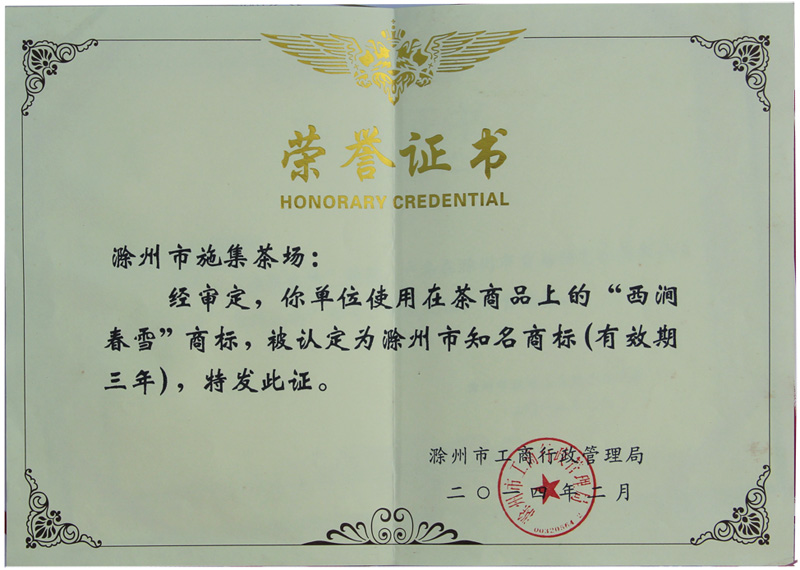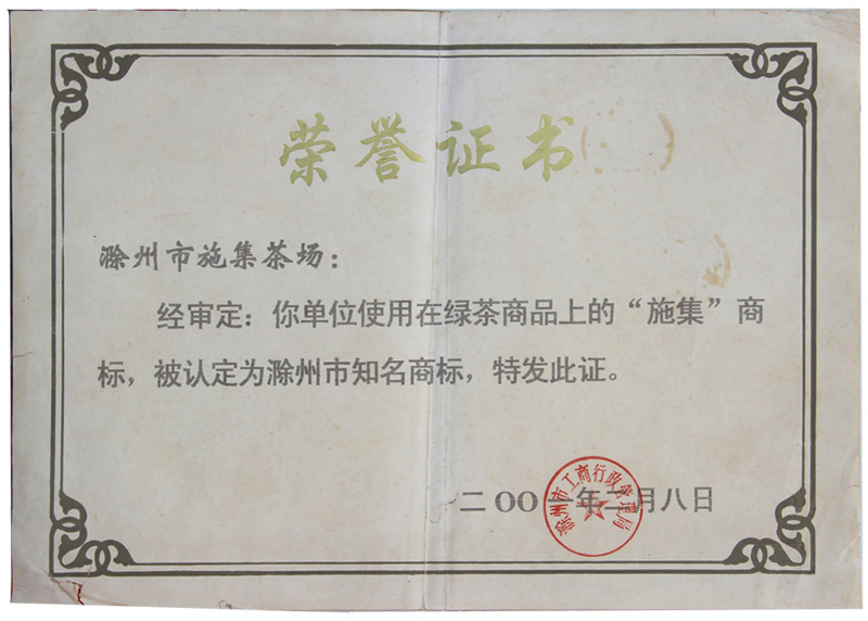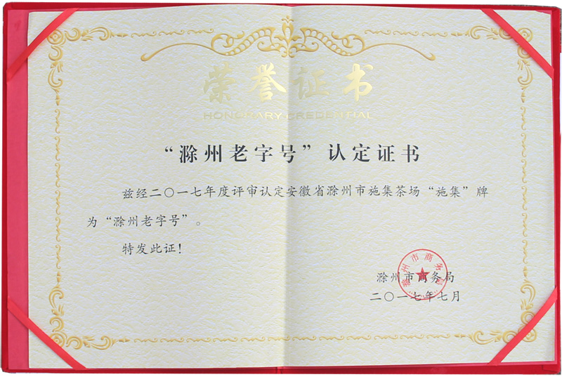 滁州老字號(hào)認(rèn)定證書