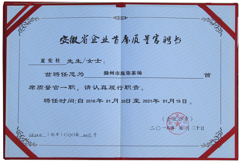 安徽省企業(yè)首席質(zhì)量官